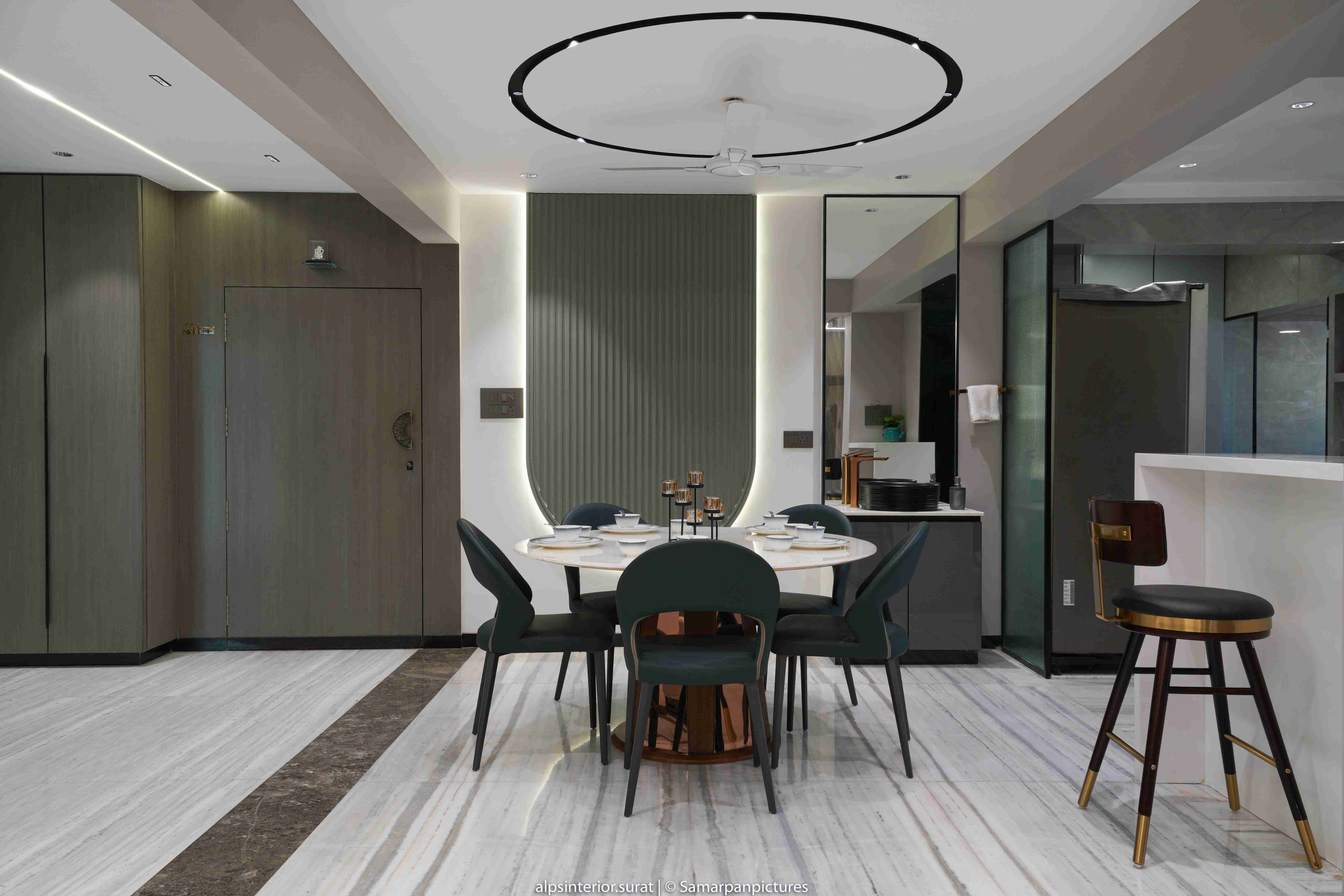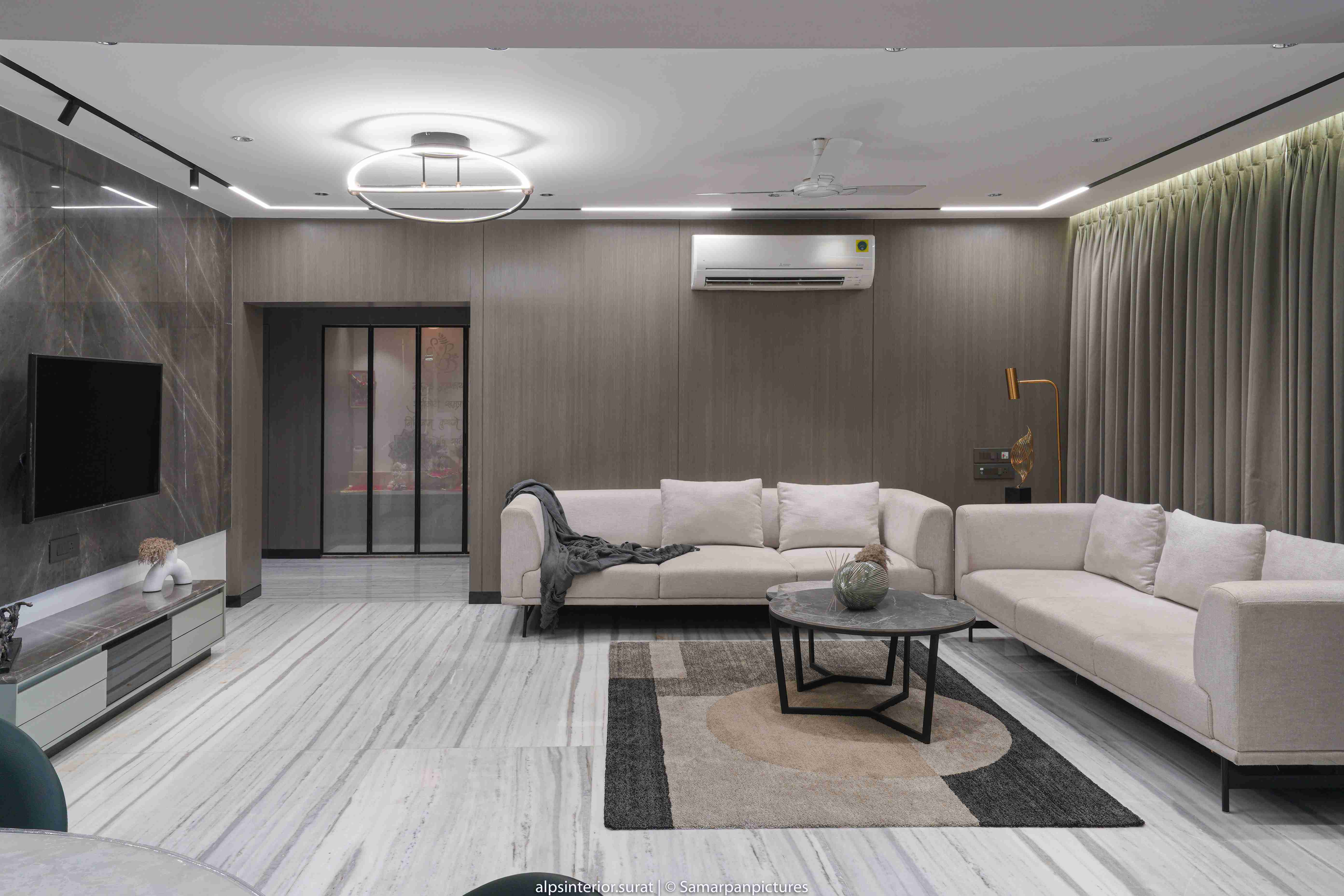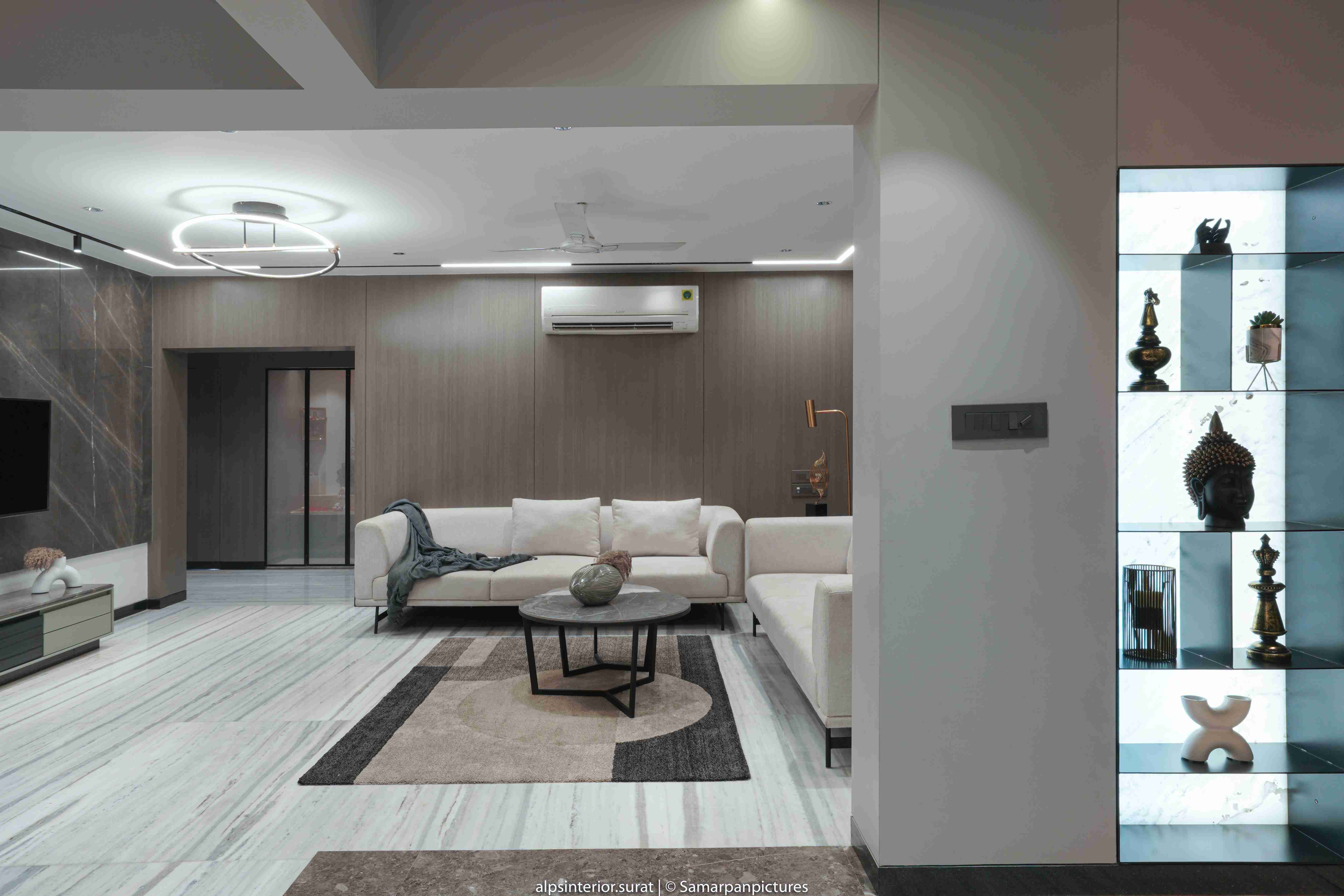 According to the principal designer, the clients had a strong preference for greys and browns, therefore we wanted to combine those colours in a subtle yet noticeable way. An outstanding living and dining area with an open floor layout makes it easier to picture imagining social events.The underlying colour scheme is neutral, but vibrant décor touches like carpets and decor items bring in fresh vibrancy. The walls were painted a light grey colour, and the living room and dining room were combined, giving the impression that the area was larger.